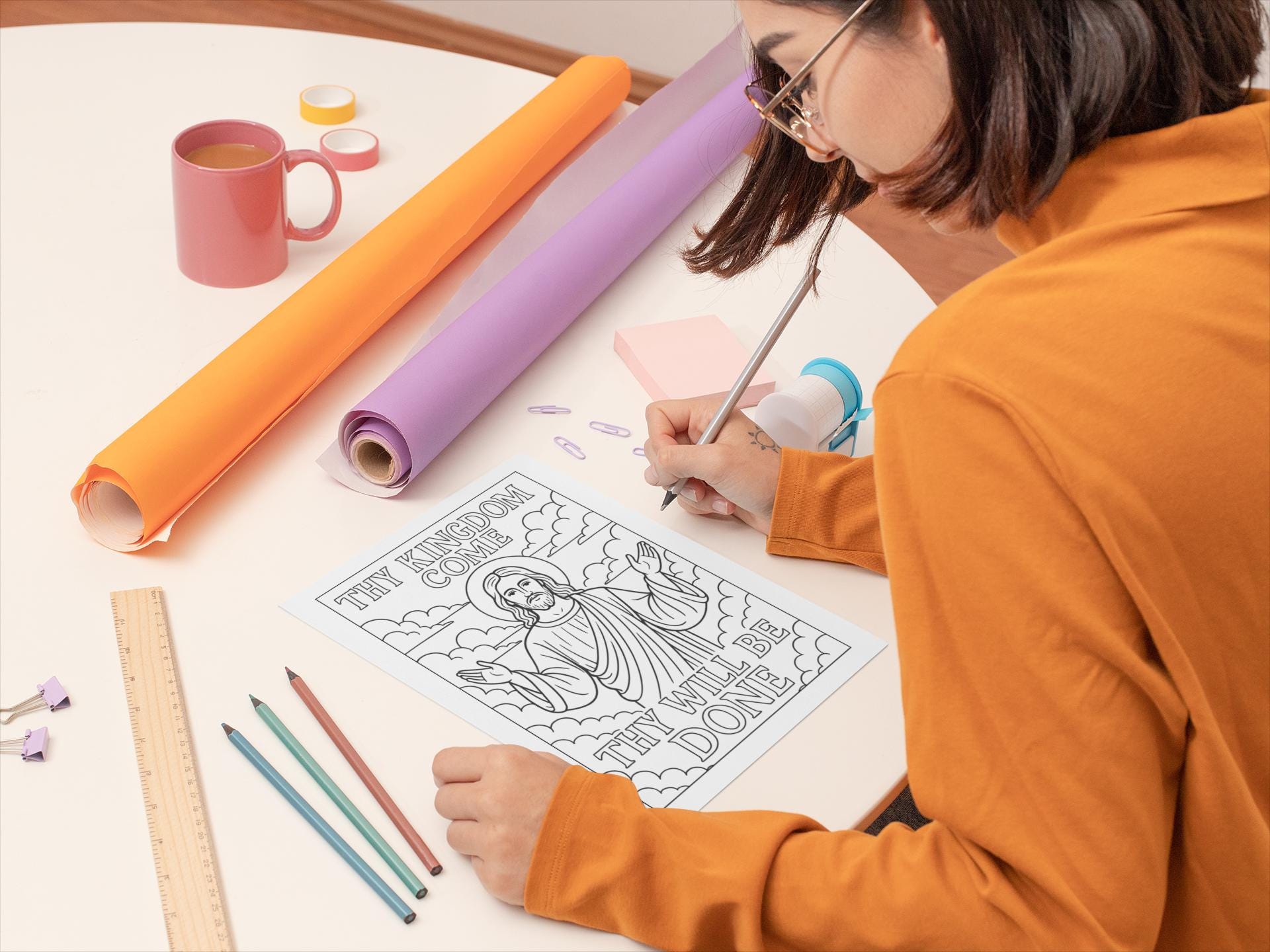 Bring peace and purpose to your quiet moments with this beautifully illustrated faith-based coloring page, featuring the powerful words: “Thy Kingdom Come, Thy Will Be Done.”